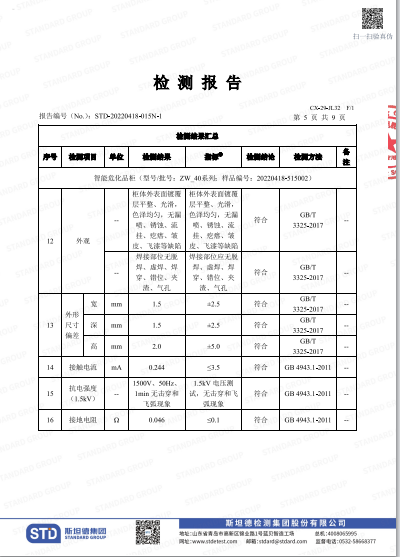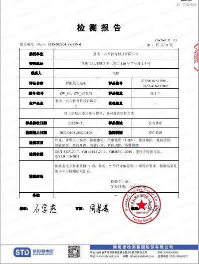 下圖:第三方出具的智能柜機質檢測評合格報告
