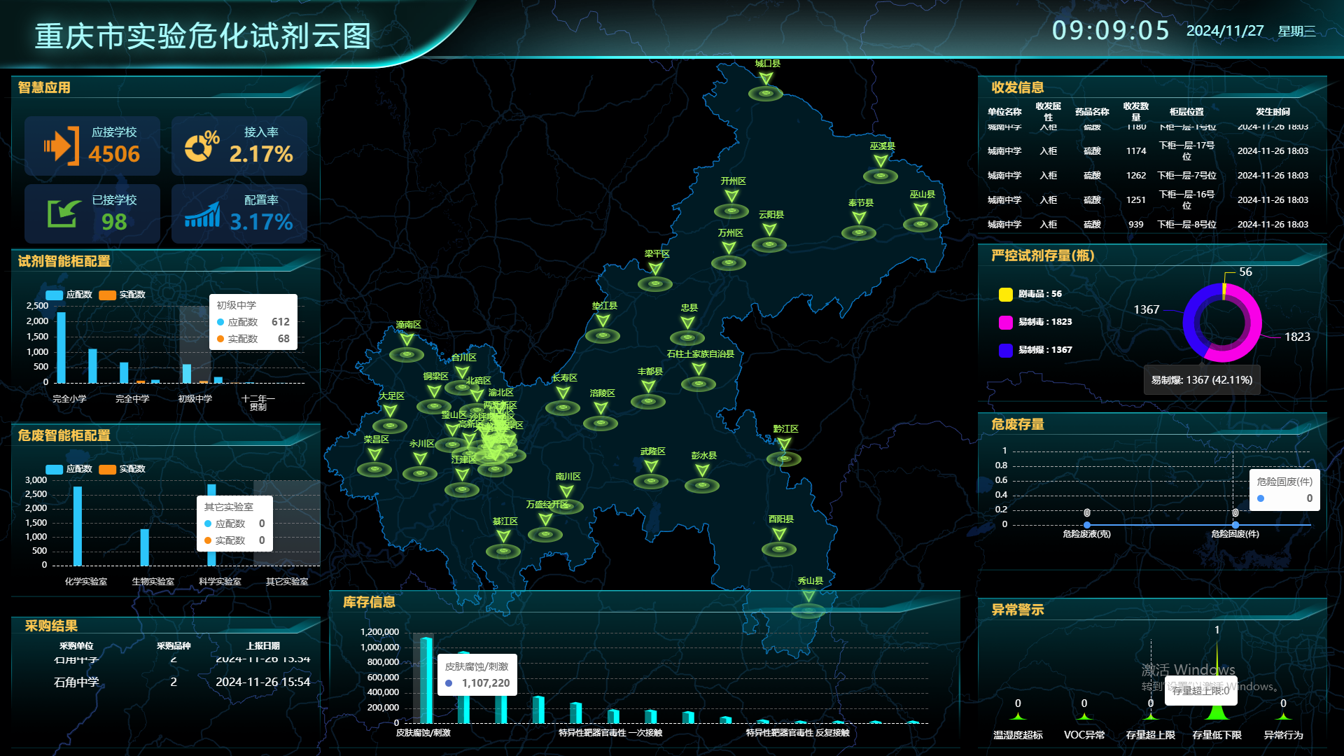 上圖:重慶市學校危化試劑智慧管理駕駛艙