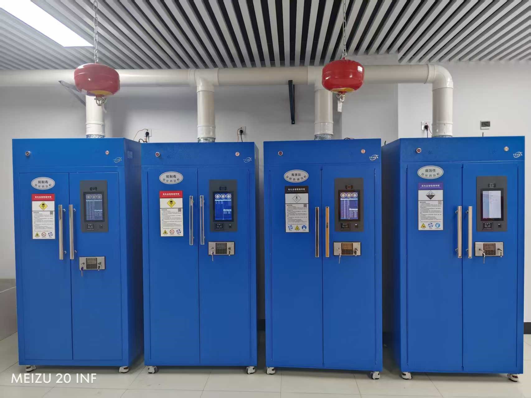 (1)傳統儲存方式風險大?,F行學校?;噭┐蠖啻娣庞谀举|、鐵皮、塑料保管柜中,沒有分區隔離存放,保管柜與高溫設備距離太近,易發生燃爆、泄露等事故。