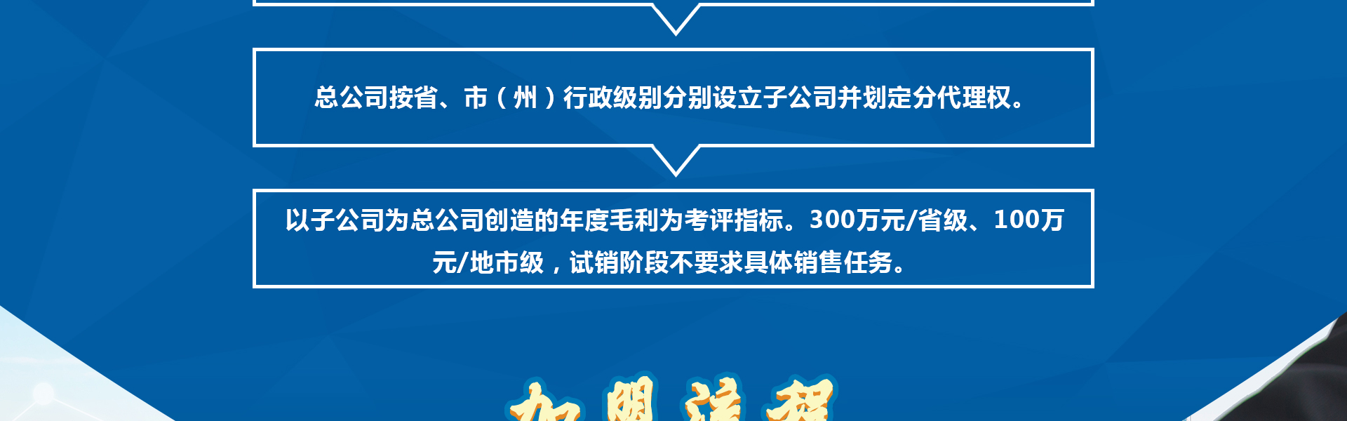 連續(xù)三年均完成總公司規(guī)定的年度銷(xiāo)售目標(biāo),則無(wú)償受讓總公司10%股權(quán)。每年完成總公司規(guī)定的毛利目標(biāo)后,超額部分享有15%-30%返點(diǎn)。